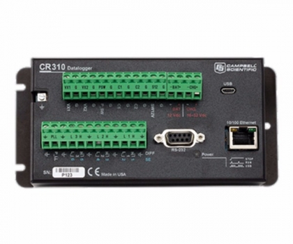 产品简介:CR310是一款多用途、紧凑型、低成本的测量和控制数据采集器,包括集成的10/100以太网端口和可移动连接器。属于入门级数据采集器。它拥有丰富的指令集,兼容大多数水文、气象、环境以及工业方面的传感器,可以通过多种网络方式采集数据,并根据适合用户的通讯协议进行传输。CR310也可以进行本地或远程的自动化操作,控制和M2M通信,适用于需要长期监测,远程监控的小型系统。