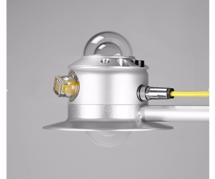 其白色的遮阳罩能够防止主体部分变热。下部的圆锥形防眩罩能够防止日出和日落时的太阳光直接照射在下部的玻璃圆顶上。