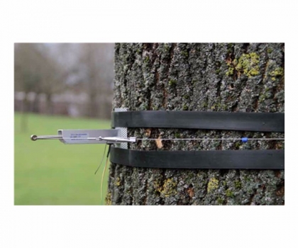 传感器通过一个由热膨胀系数低的合金制成的钢丝绳固定在树上。用小塑料环减少钢丝绳对树的压力,并减少摩擦阻力,大大提高灵敏度