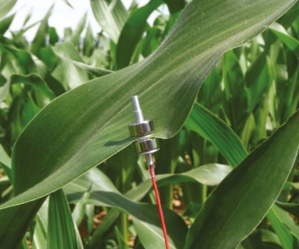 Yara膨压传感器用于实时测量叶片膨胀压力的变化, 叶片中的膨胀压力与传感器的电磁压力相反,该电磁压力在测量过程中保持恒定。由于灌溉或者缺水叶片的膨胀压力产生变化,由于反作用力的原理,Yara彭压传感器可以测量磁力和膨胀力之间的压力差,从而测量出植物膨压的变化。