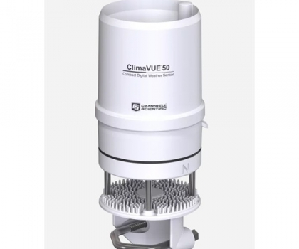 ClimaVUE™50是一款经济实惠的一体化气象传感器,可与CAMPBELL公司其它的高度灵活度可扩展的数据采集器配合使用,便捷的满足常见气象参数的监测需求。该传感器使用SDI-12协议传输采集到的空气温度、相对湿度、蒸汽压,气压,风(速度,阵风和方向),太阳辐射,降水和雷击(数量和距离)数据。