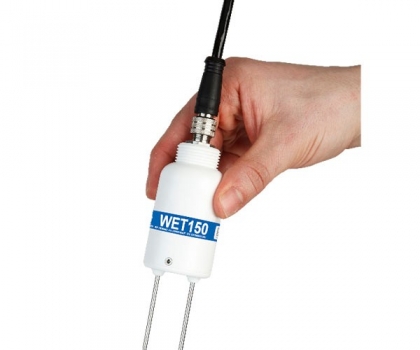 WET150土壤水分温度电导率传感器用于同时测量土壤或基质中的水分、温度和电导率(EC)三个影响植物生长的关键指标。WET150土壤水分温度电导率传感器并具有关键优势在于其能够可靠地计算出孔隙水电导率(ECp)的能力,电导率是植物可用水的离子含量。